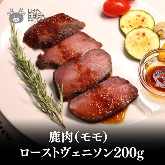 低温調理された鹿肉、ローストヴェニソン!鹿肉(モモ)のロースト!大好評の柔らかい鹿肉のステーキです。 冷蔵庫解凍後お好みの厚さにカットして食べるだけ。自然の恵みを存分に! 200g